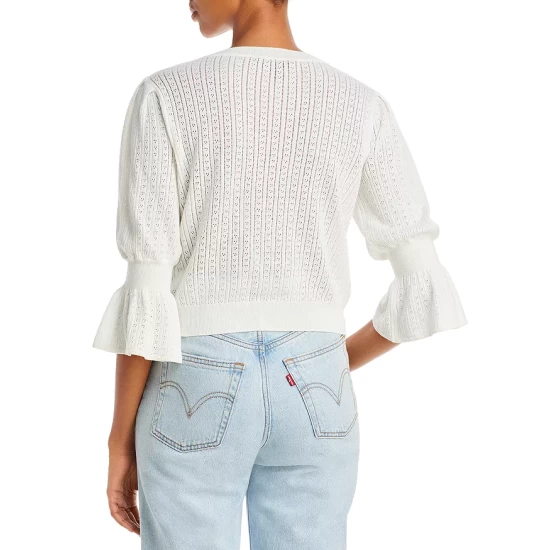 - Three-quarter length sleeves, banded elbows, flounced cuffs