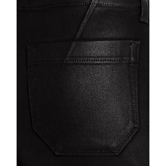 - Zip fly with logo button closure, four patch-pocket silhouette